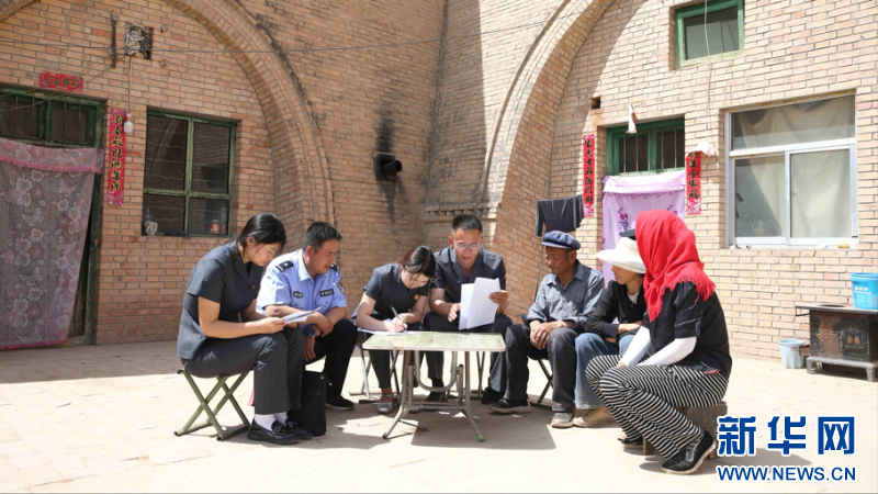 圖為法官走進(jìn)農(nóng)戶院落調(diào)處矛盾糾紛。(慶陽市中級人民法院供圖)