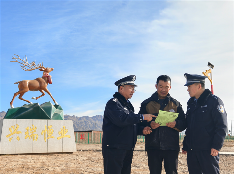 ▲山丹縣公安局清泉派出所民輔警深入轄區(qū)梅花鹿養(yǎng)殖基地,了解冬季梅花鹿養(yǎng)殖情況,開展隱患排查、治安巡防、反詐宣傳、糾紛調(diào)解等護(hù)企安商工作。(尚婧 攝)