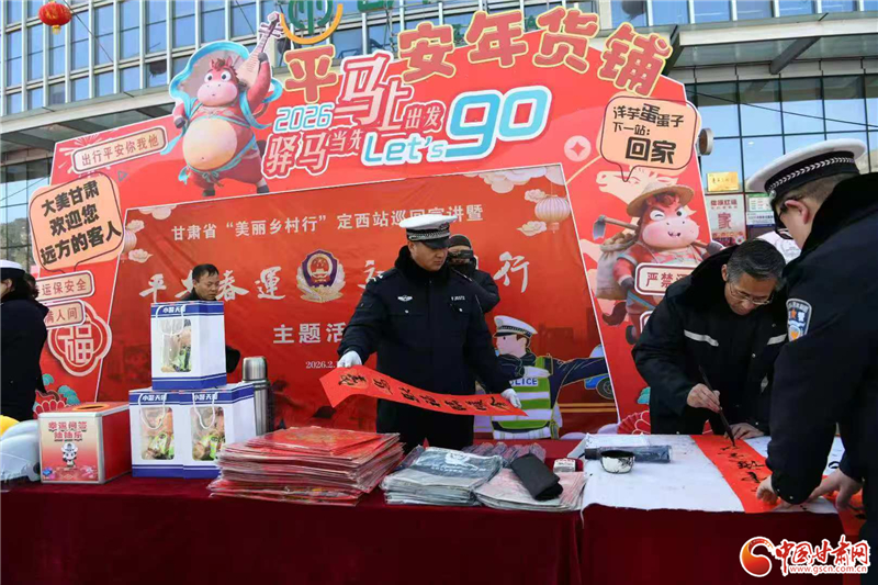 2月10日,農(nóng)歷臘月二十三,是中國傳統(tǒng)節(jié)日小年,正值2026年春運(yùn)高峰,甘肅省公安廳交通管理總隊聯(lián)合定西市公安局交管支隊在服務(wù)區(qū)舉辦了甘肅省“美麗鄉(xiāng)村行”(定西站)交通安全巡回宣講暨“平安春運(yùn)·交警同行”主題活動,向南來北往的駕駛?cè)怂蜕闲麓旱淖8:吞貏e的“安全年禮”。