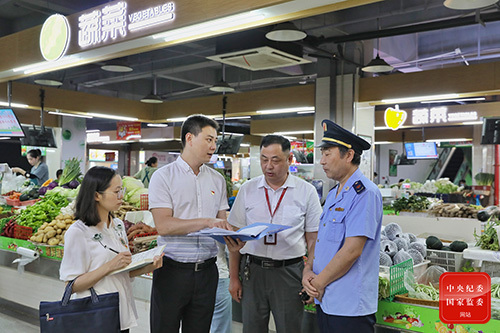 圖為南京市棲霞區(qū)紀委監(jiān)委針對“陽光惠民”監(jiān)管平臺上的預警信息,組織力量核查該區(qū)星級農(nóng)貿(mào)市場獎勵資金撥付方面的問題線索。