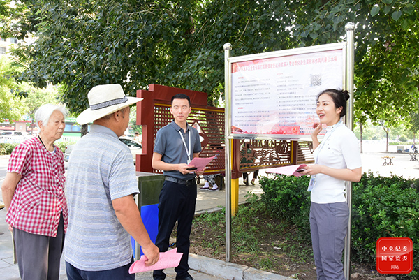 河北省邯鄲市永年區(qū)紀委監(jiān)委在村委會、醫(yī)院、公園等公眾場所懸掛公示牌,向群眾發(fā)放告知書,對群眾身邊腐敗和作風問題整治內(nèi)容進行現(xiàn)場講解,提高群眾知曉率。(河北省邯鄲市永年區(qū)紀委監(jiān)委 朱照坤 攝)