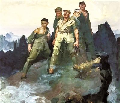 有專家評價(jià)說,畫家選擇了英雄們跳崖犧牲前的一瞬間,深入刻畫人物的英雄氣概。在統(tǒng)一的氣勢中,不同人物的動(dòng)作、眼神又巧妙地富有變化,作為背景的峻峭雄偉的山峰與人物群像融為一體,猶如刻在大自然中與世長存的紀(jì)念碑。(一凡)