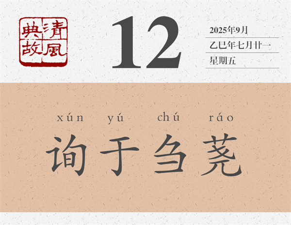 割草的人和打柴的人,就是布衣,就是平民,就是老百姓。“詢于芻蕘”,就是向割草的人和打柴的人問事,向最底層的、最普通的、最平凡的人請教。后世則以此為典,比喻不恥下問。 白居易新樂府詩《驃國樂》:“驃樂驃樂徒喧喧,不如聞此芻蕘言。”陸游詩《送七兄赴揚州帥幕》:“諸公誰聽芻蕘策,吾輩空懷畎畝憂。”