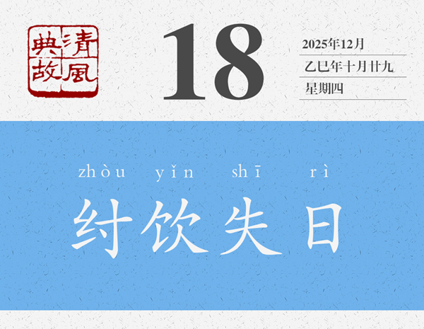 一提起商紂王,大概就會(huì)想起沉湎酒色、窮兵黷武、重刑厚斂等等,與之相關(guān)的典故也有酒池肉林、炮烙之刑、牝雞司晨等等。“歡以失日”是他沉湎酒色的又一個(gè)故事,往輕處說就是酒醉失憶了,往重處說就是把一切都拋到九霄云外了?;?,即子胥余,商紂王的叔父,官至太師,封于箕,故稱箕子,“殷末三仁”之一,《論語·微子》曰:“微子去之,箕子為之奴,比干諫而死,殷有三仁焉。”箕子曾多次勸諫紂王,但紂王不聽,他心灰意冷,索性披發(fā)佯狂,紂王見此,以為箕子真瘋了,遂將他囚禁起來,貶為奴隸。有了這個(gè)背景,就知道箕子為什么要“辭以醉而不知”了。后世則以“紂飲失日”為典,形容生活荒唐混亂,也用來形容不辨時(shí)間。黃遵憲詩《倫敦大霧行》:“蒼天已死黃天立,倒海翻云百神集。一時(shí)天醉帝夢(mèng)酣,舉國沉迷同失日。”