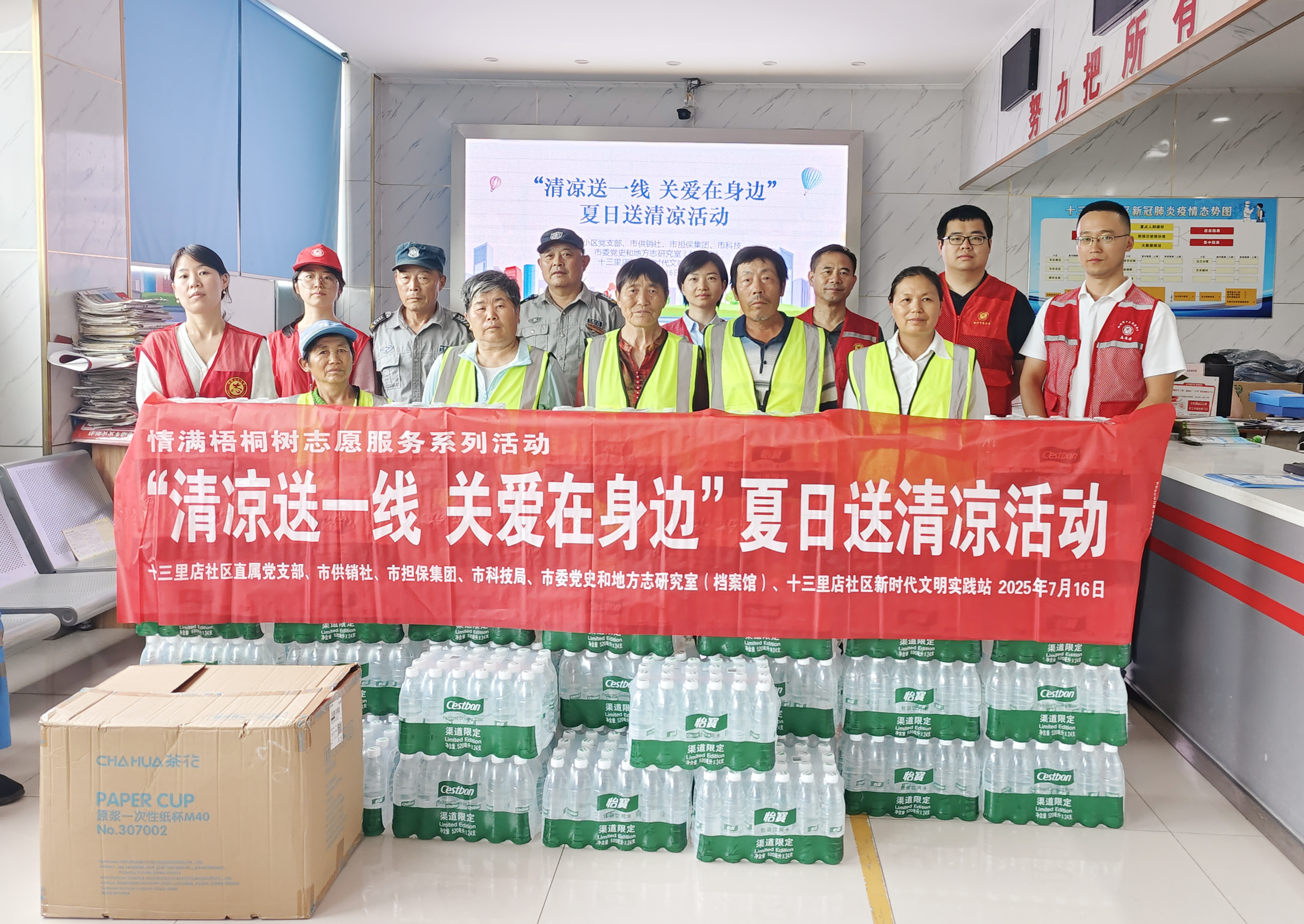 入夏以來,持續(xù)高溫炙烤大地,給戶外作業(yè)的環(huán)衛(wèi)工人帶來了嚴(yán)峻“烤”驗(yàn)。為給炎炎夏日里高溫下作業(yè)的社區(qū)環(huán)衛(wèi)工人們送去一絲清涼和關(guān)愛,7月16日,市擔(dān)保集團(tuán)三個(gè)黨支部聯(lián)合共建單位的黨組織,共同開展“清涼送一線 關(guān)愛在身邊”黨員志愿服務(wù)活動(dòng),為共建的十三里店社區(qū)全體環(huán)衛(wèi)工人送去黨組織的關(guān)懷與問候。 活動(dòng)中,黨員志愿者們將提前準(zhǔn)備好的礦泉水、毛巾、香皂、花露水等防暑降溫物品一一分送到轄區(qū)每一位環(huán)衛(wèi)工手中,并向他們表達(dá)真誠(chéng)的問候和感激,是他們冒酷暑、頂烈日,用實(shí)際行動(dòng)維護(hù)著社區(qū)的環(huán)境整潔,收到物品的環(huán)衛(wèi)工人們顯得格外開心。 通過夏日送清涼志愿服務(wù)活動(dòng),進(jìn)一步拉近黨員與群眾的距離,密切黨群關(guān)系,把“我為群眾辦實(shí)事”落到實(shí)處。通過“小清涼”傳遞“大文明”,助力營(yíng)造尊重勞動(dòng)者、共建和諧文明社區(qū)的良好氛圍。下一步,市擔(dān)保集團(tuán)將進(jìn)一步發(fā)揮自身優(yōu)勢(shì)...