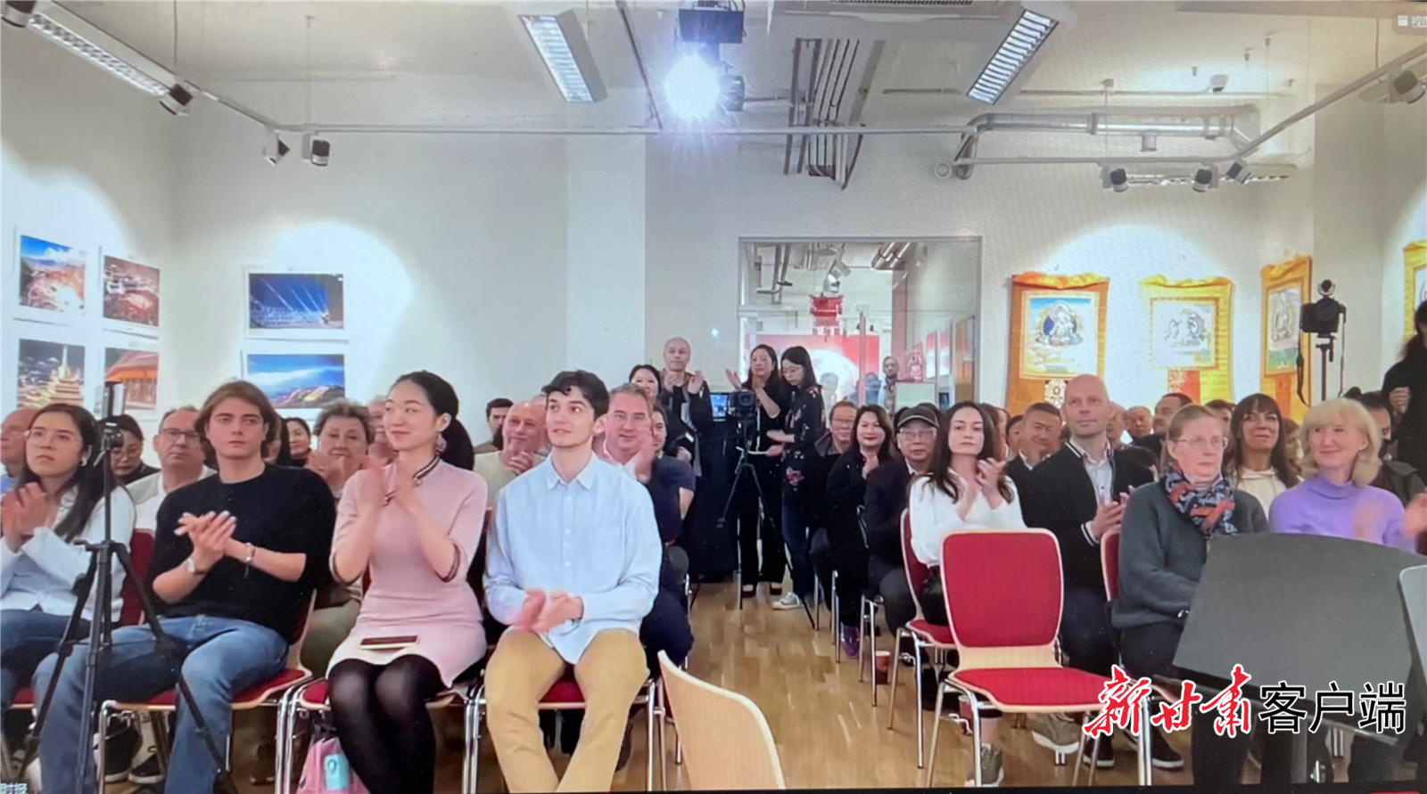 在奧地利維也納參會觀眾正在收看原創(chuàng)MV《我畫個(gè)甘肅給你看下》。