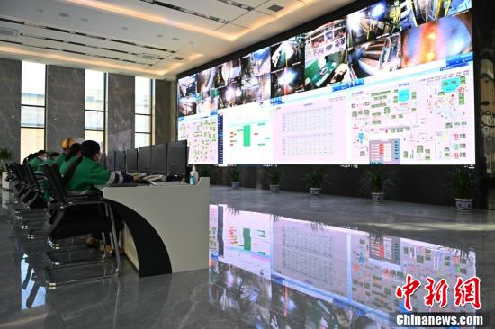 金川集團(tuán)鎳冶煉廠閃速爐車(chē)間生產(chǎn)指揮中心現(xiàn)場(chǎng),工作人員正在進(jìn)行遠(yuǎn)程監(jiān)控和操作。