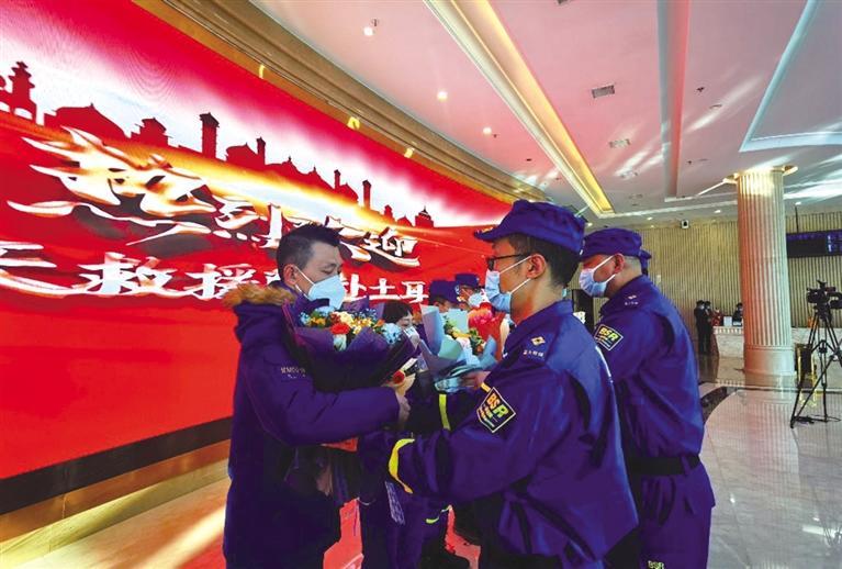 原標(biāo)題:9名馳援土耳其的甘肅藍(lán)天救援隊(duì)隊(duì)員平安歸來(lái)