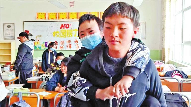 原標(biāo)題:背著同學(xué)上學(xué)“我就是你的腿”