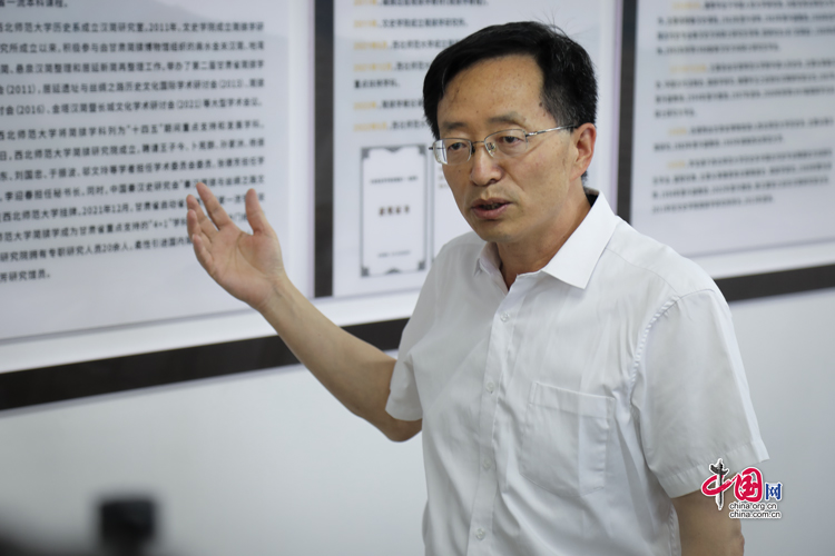 7月31日,西北師范大學(xué)歷史文化學(xué)院院長(zhǎng)、博士生導(dǎo)師劉再聰向“簡(jiǎn)牘中國(guó)”媒體團(tuán)介紹簡(jiǎn)牘學(xué)學(xué)科建設(shè)情況。中國(guó)網(wǎng)記者 鄭偉 攝