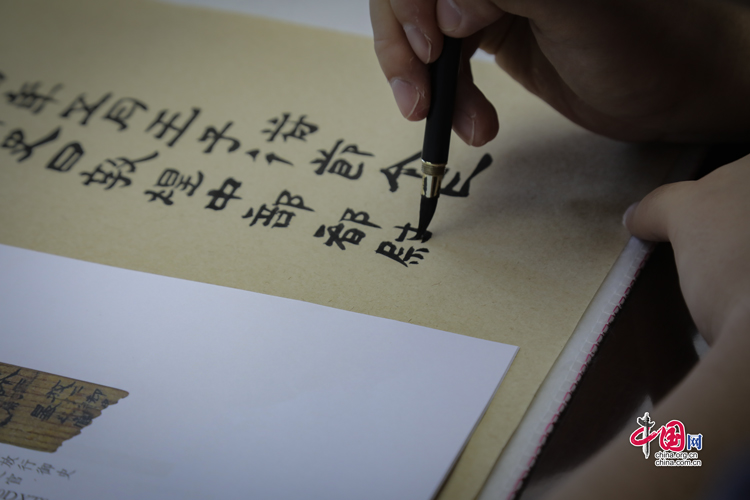 7月31日,蘭州大學(xué)古文字學(xué)強基計劃同學(xué)正在臨摹簡牘。中國網(wǎng)記者 鄭偉 攝
