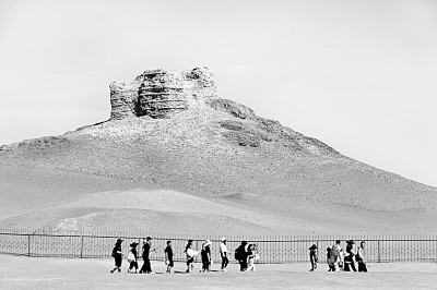8月6日,游客在甘肅省敦煌市陽關景區(qū)游覽。新華社發(fā)