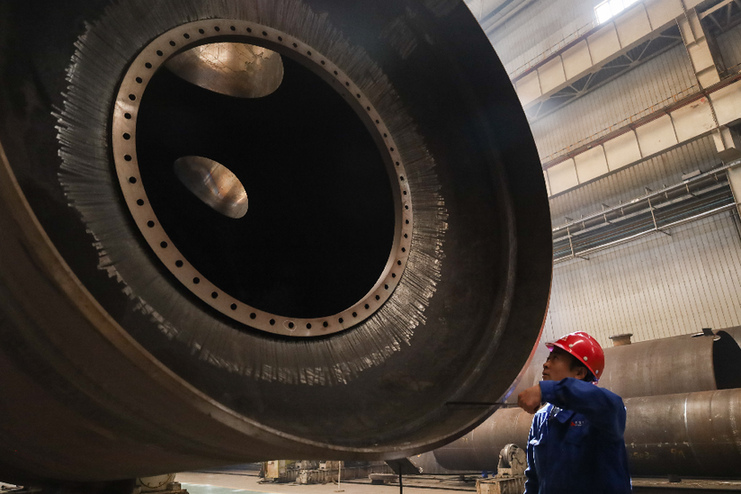 工人在蘭州新區(qū)蘭石集團(tuán)高端裝備產(chǎn)業(yè)園的生產(chǎn)車(chē)間作業(yè)。新華社記者 馬希平 攝