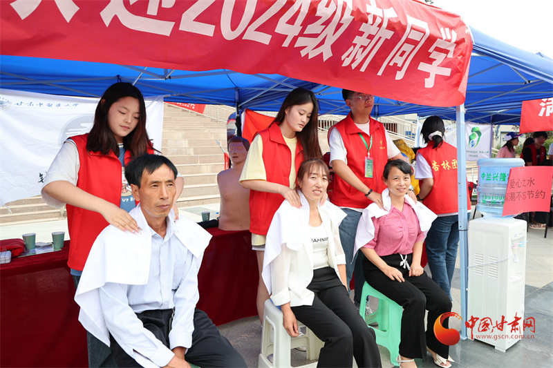 近水樓臺先得月,甘肅中醫(yī)藥大學(xué)校園社團(tuán)依托中醫(yī)藥專業(yè)優(yōu)勢,在迎新點(diǎn)開設(shè)推拿按摩志愿服務(wù),以專業(yè)手法解決新生和家長的旅途疲勞。