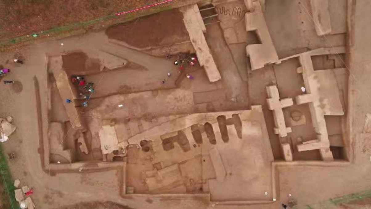 大型夯土建筑區(qū)發(fā)掘區(qū)航拍