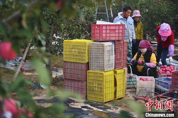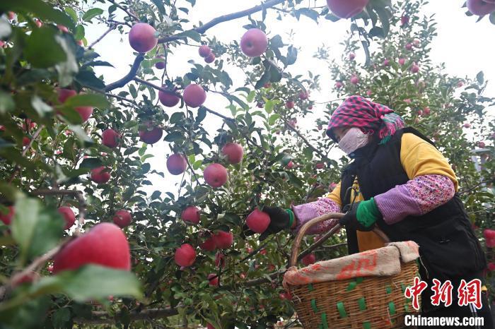 10月21日,在甘肅省天水市秦安縣一果園內(nèi),果農(nóng)進行蘋果采收工作。中新社記者李亞龍攝