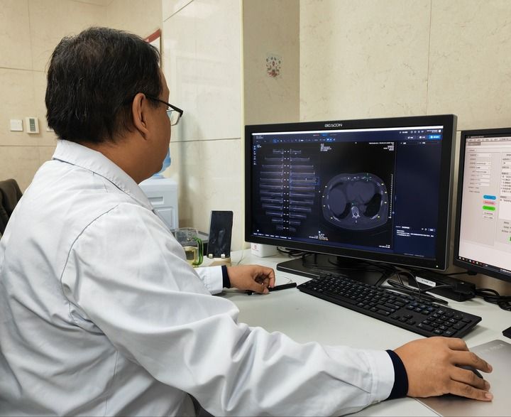 在寧夏回族自治區(qū)銀川市第一人民醫(yī)院,放射科副主任醫(yī)師姜榮興打開(kāi)電腦上的人工智能輔助診斷系統(tǒng),導(dǎo)入病患CT影像資料后,輕點(diǎn)鼠標(biāo),系統(tǒng)瞬間完成初篩——24根肋骨逐一呈現(xiàn)在屏幕上,骨折和疑似骨折的部位一目了然。醫(yī)生再對(duì)初篩結(jié)果作出診斷處理,全程用時(shí)不到4分鐘。
