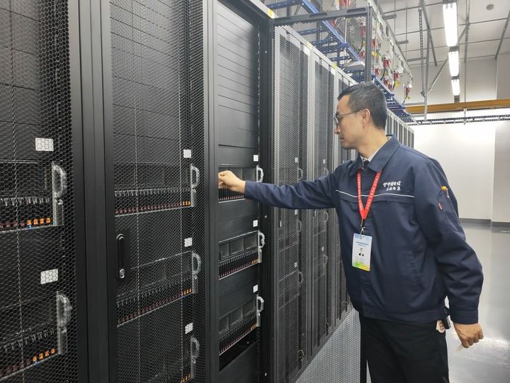 國(guó)家數(shù)據(jù)中心集群(甘肅·慶陽(yáng))“東數(shù)西算”產(chǎn)業(yè)園區(qū),工作人員在機(jī)柜旁作業(yè)(2024年10月28日攝)。新華社記者 梁軍 攝