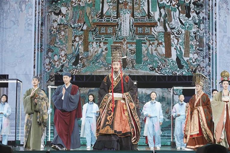 中國(guó)甘肅網(wǎng)12月11日訊 據(jù)蘭州晚報(bào)報(bào)道(記者 張鵬偉)12月7日,由中國(guó)國(guó)家話(huà)劇院院長(zhǎng)田沁鑫擔(dān)任編劇、導(dǎo)演,中國(guó)國(guó)家話(huà)劇院青年演員張藝興主演的音樂(lè)話(huà)劇《受到召喚·敦煌》正式首演,國(guó)家速滑館“冰絲帶”座無(wú)虛席,觀眾借由敦煌不斷流轉(zhuǎn)的千年時(shí)空,沉浸感受華夏歷史的恢宏與廣闊,真情為中華文化的璀璨與瑰麗而自豪。