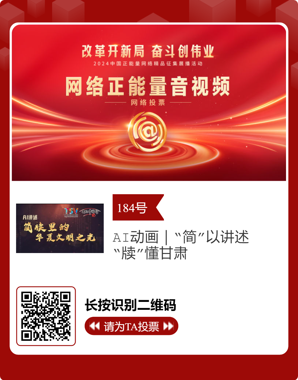 2024中國正能量網(wǎng)絡(luò)精品,蘭州入圍作品邀您投票!