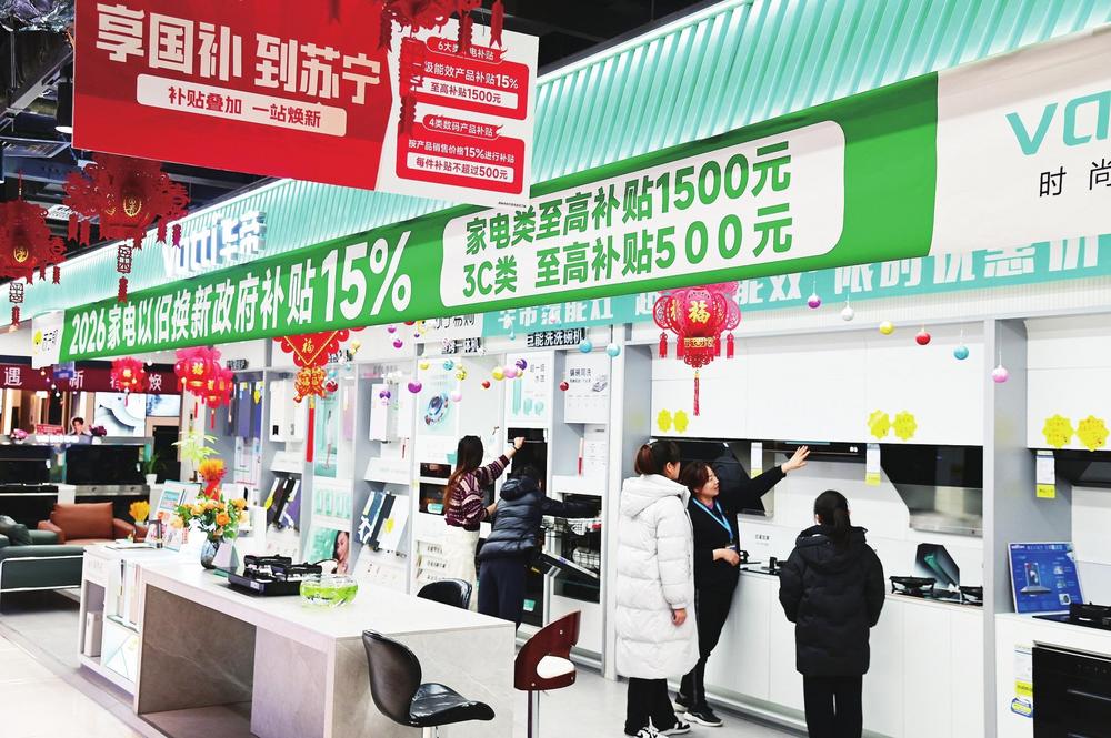 大寒節(jié)氣剛過(guò),蘭州西關(guān)商圈的蘇寧易購(gòu)超級(jí)體驗(yàn)店內(nèi)已是暖意融融。蘭州市民張欣麗盯著一款海信電視的價(jià)格標(biāo)簽感慨:“這款85英寸的電視機(jī)原價(jià)7411元,疊加國(guó)補(bǔ)、門店優(yōu)惠后,到手6299元,這波福利太實(shí)在了。”她果斷下單的背后,是2026年“新國(guó)補(bǔ)”政策在甘肅落地后,消費(fèi)熱潮涌動(dòng)的一個(gè)縮影。