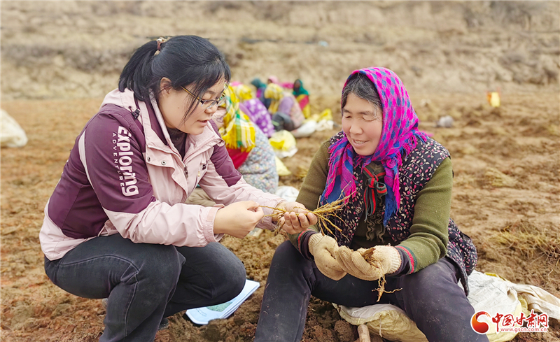 在中藥材繁育基地采挖現(xiàn)場,農(nóng)技人員重點講解了山旱地黃芩繁育技術、種苗貯存知識,指導農(nóng)戶掌握種苗采挖及貯存的環(huán)境溫度要求,降低運輸過程中因積壓溫度過高、蘆頭受損導致的出苗率下降風險,確保高標準育苗和移栽成活率。