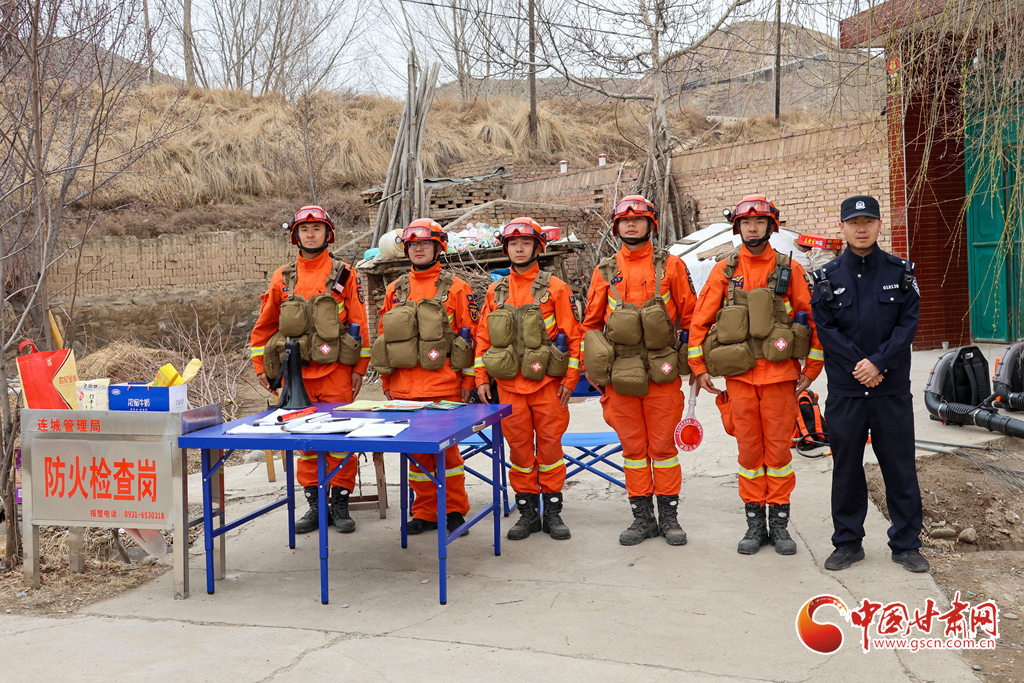 甘肅消防救援機(jī)動(dòng)總隊(duì)蘭州支隊(duì)消防救援人員聯(lián)合甘肅省連城國家級(jí)自然保護(hù)區(qū)管理局、連城鎮(zhèn)政府、蘭州市公安局森林分局連城派出所在明家莊村阿虎狼溝設(shè)卡檢查。