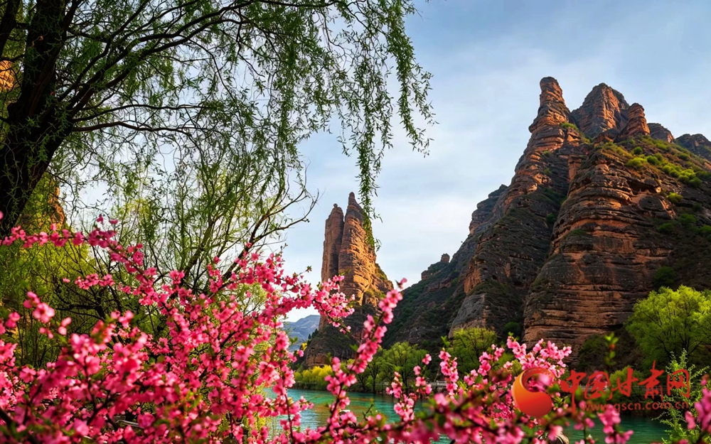 4月12日,永靖縣炳靈湖上,一場跨越千年的春日邂逅正在上演。
