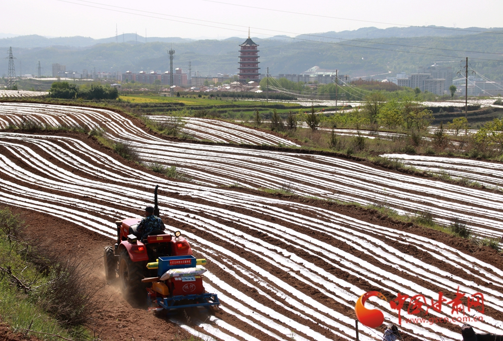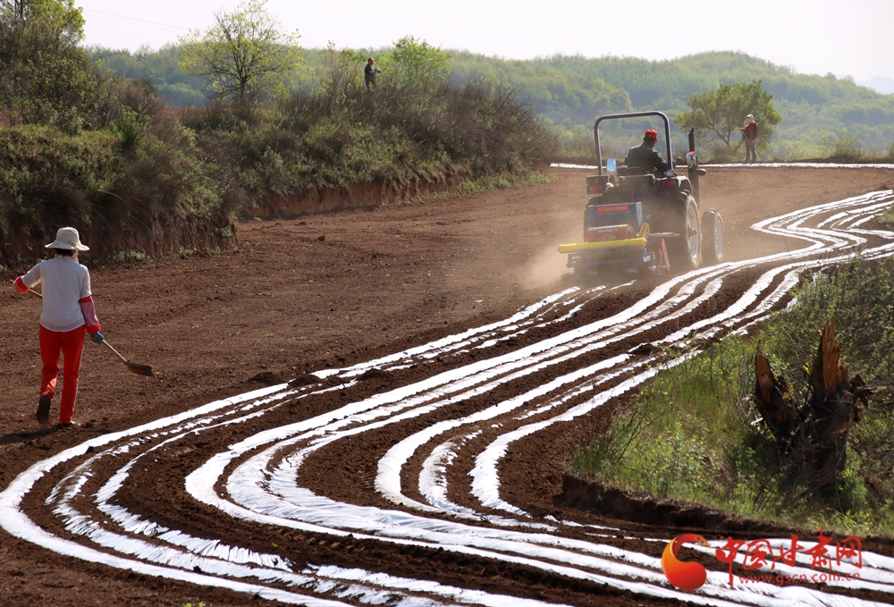 拖拉機(jī)在田壟間劃出規(guī)整的覆膜線條,農(nóng)人揮鋤勞作