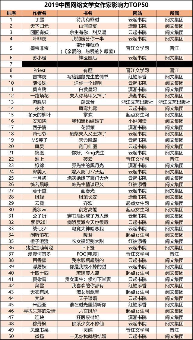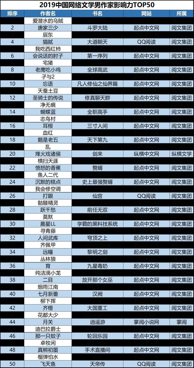 中國(guó)青年報(bào)客戶端訊(中青報(bào)·中青網(wǎng)記者 沈杰群)日前,《2019年中國(guó)網(wǎng)絡(luò)作家影響力榜》正式發(fā)布,通過對(duì)作家的作品影響力、平臺(tái)影響力及新媒體影響力多維度的分析與論證,綜合衡量出作家影響力,評(píng)選出國(guó)內(nèi)最具影響力男作家TOP50及女作家TOP50。