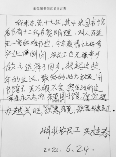 吳桂春:這句標(biāo)語(yǔ)我現(xiàn)在聽(tīng)你說(shuō),才知道是誰(shuí)的題詞,怪不得圖書(shū)館里的顯著位置都有“知識(shí)惠東莞”這句話。當(dāng)時(shí)覺(jué)得只要在圖書(shū)館辦一張借閱證,我這種外來(lái)民工也能進(jìn)來(lái)看書(shū)。書(shū)籍對(duì)每一個(gè)人來(lái)說(shuō)都是公平的,不管誰(shuí)看,都能得到實(shí)惠,知識(shí)也能惠及外來(lái)民工。