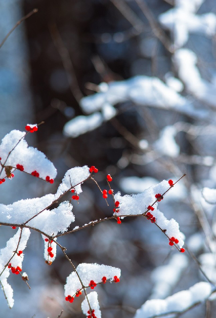 許多人走到這里,停下了腳步,被這雪后滿樹熱烈的紅色吸引。風(fēng)在這個(gè)時(shí)刻,沒(méi)有了聲息,似乎是因?yàn)檫@一簇炫目的紅。天空是清澈透明的藍(lán),空氣中彌漫著清冽的干枯植物的氣息,這氣息來(lái)自頂著雪花的干草、沉睡的樹木、滄桑的松柏、埋藏在雪下的紅隼的羽毛、雨燕干燥的糞便,以及鳥雀熱愛(ài)的金銀木酸甜可口的果實(shí)。