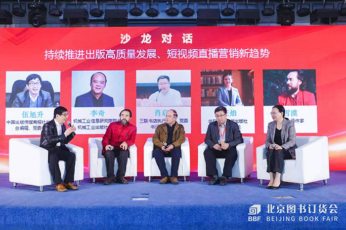 沙龍對(duì)話環(huán)節(jié)中,生活·讀書·新知三聯(lián)書店總編輯肖啟明,機(jī)械工業(yè)信息研究院院長(zhǎng)、機(jī)械工業(yè)出版社社長(zhǎng)李奇,華東師范大學(xué)出版社董事長(zhǎng)、社長(zhǎng)王焰,國(guó)家一級(jí)作家雪漠,共同探討短視頻直播營(yíng)銷心得、經(jīng)驗(yàn)及趨勢(shì)。
