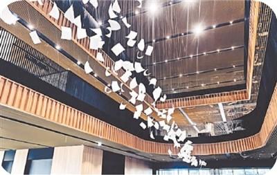 走進大廳,英國藝術(shù)家保羅·考克斯基在挑高大廳創(chuàng)作的公共藝術(shù)作品“陣風”映入眼簾。上千本白紙書頁隨風騰飛的瞬間在空中凝結(jié)下來,象征著閱讀的快樂與思考,震撼的畫面宛如置身充滿藝術(shù)氣息的美術(shù)館。