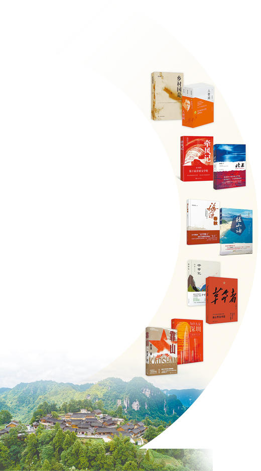 書影圖片從上至下依次為《鄉(xiāng)村國是》《人世間》《牽風(fēng)記》《北上》《海邊春秋》《經(jīng)山?!贰对浦杏洝贰陡锩摺贰稙槭裁词巧钲凇贰犊可健?。資料圖片