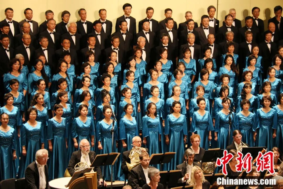 2015年8月,美國舊金山灣區(qū)華人合唱團(tuán)在硅谷弗林特表演藝術(shù)中心演唱《黃河大合唱》。中新社記者 劉丹 攝
