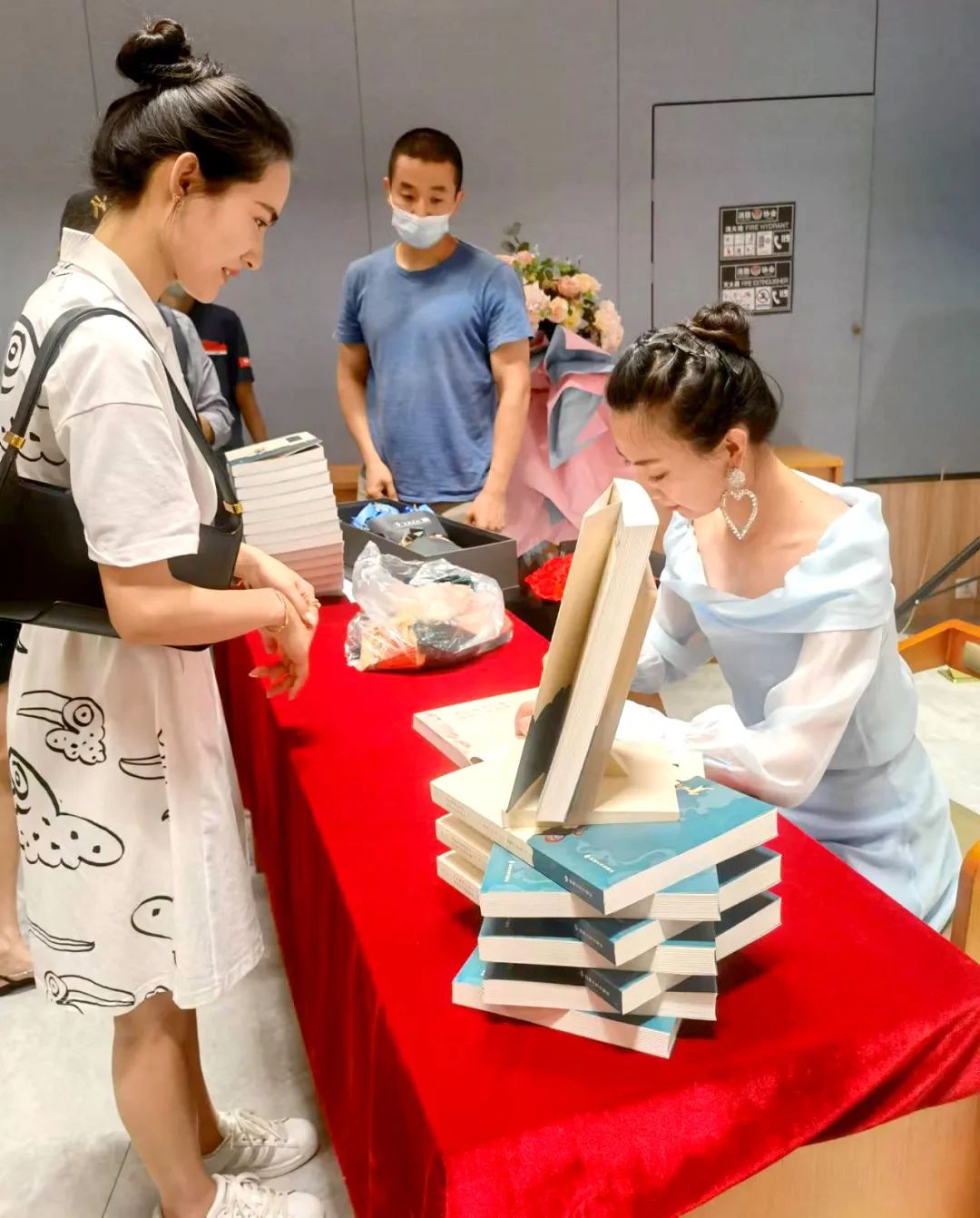 見面會還設(shè)計了互動環(huán)節(jié),主編李莉現(xiàn)場教學(xué),五位敦煌舞愛好者認(rèn)真模仿,作者還向參與互動的讀者贈送了本書。在簽售環(huán)節(jié)后,作者及參演人員和讀者合影留念。
