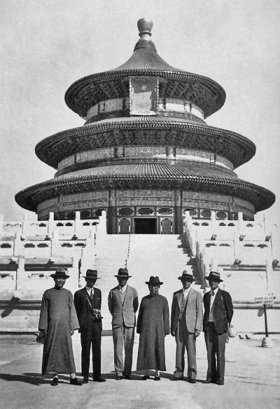 1935年5月9日,天壇圜丘壇開工,朱啟鈐、梁思成、劉敦楨、林徽因等古建專家,作為工程的技術(shù)顧問,楊廷寶則以基泰工程司總建筑師的身份指導工程實施的全過程。圖為祈年殿修繕完工紀念照。資料圖片