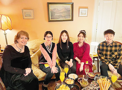 跨文化交流在學子的日常生活中頗為常見。張婧瑄在當?shù)亟Y識了一對愛爾蘭夫婦,老爺爺是一位“資深中國迷”。“這位老人去過北京并喜歡上了中國文化,圣誕節(jié)時,他和妻子邀請我和幾位朋友到家中慶祝。”令張婧瑄驚訝的是,在老人家里,她看到許多中國風的收藏品。“有國畫、書法作品、中山裝等,老爺爺還和我們聊起他在北京的故事,還說對故宮、胡同印象深刻,想再去看看。”