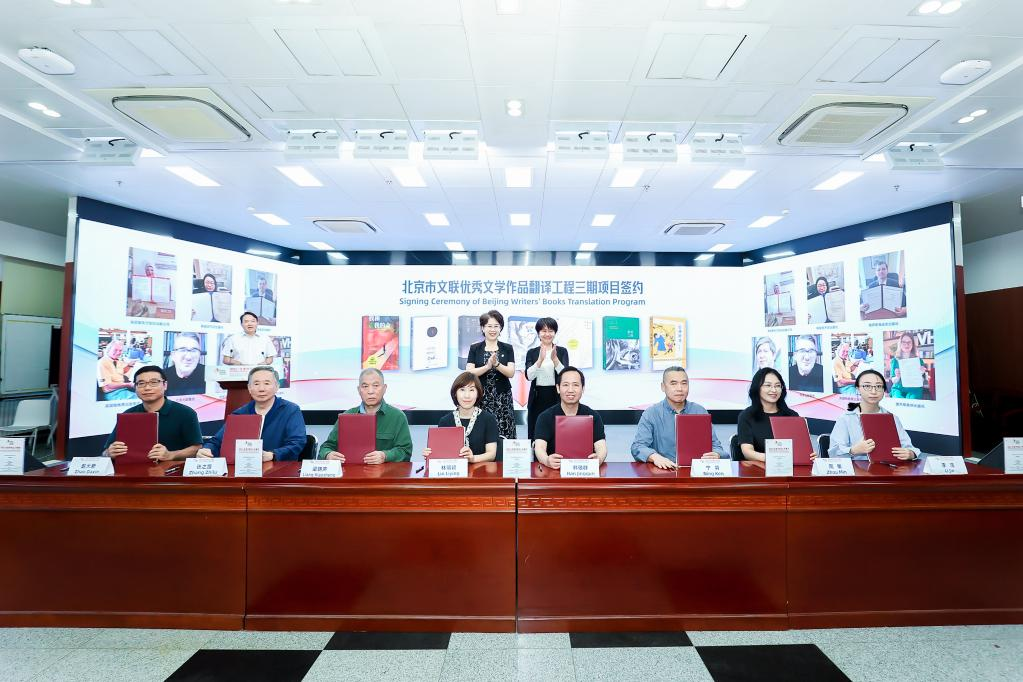 開幕式上,發(fā)布了北京市文聯(lián)優(yōu)秀文學(xué)作品翻譯工程圖書成果,周曉楓《星魚》意大利文版和英文版、葉廣芩《花貓三丫上房了》法文版、星河《北京小子》阿文版集中亮相。梁曉聲《我和我的命》、張之路《吉祥時光》、格非《月落荒寺》、畢淑敏《預(yù)約死亡》、肖復(fù)興《我們的老院》、張悅?cè)弧段已鸸舛鴣怼贰幙稀睹擅嬷恰?部作品簽署版權(quán)輸出協(xié)議,這些優(yōu)秀文學(xué)作品即將“走出去”與海外讀者見面。