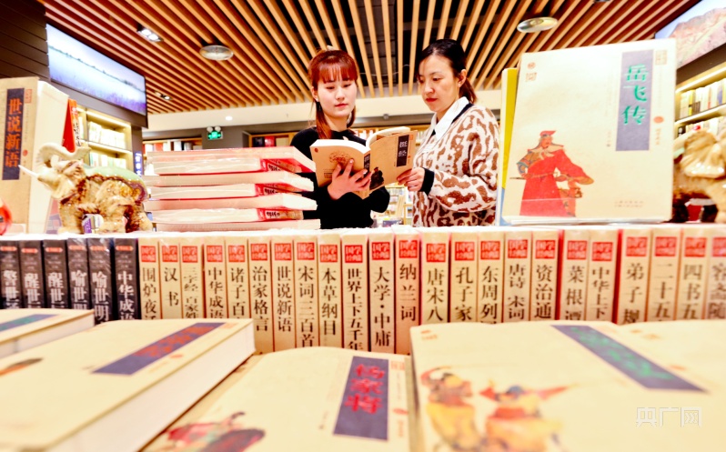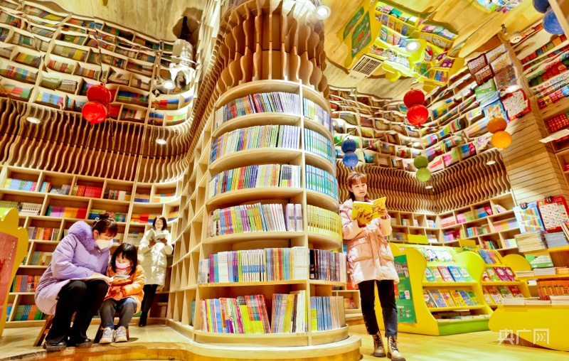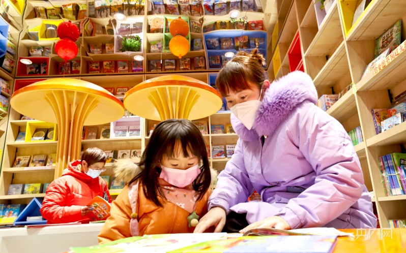 1月23日,市民帶著孩子在甘肅張掖錦華書城讀書、選書、購書。(央廣網(wǎng)發(fā) 王將 攝)