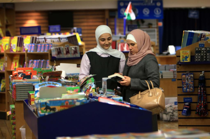 2月13日,在約旦亞喀巴港,人們在“望道號”上挑選書籍。