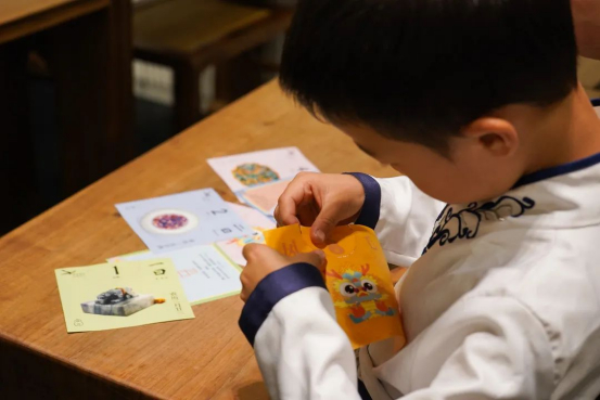 每個(gè)龍文物故事上方,也印有當(dāng)天文物的小圖,它周圍伴有一圈半圓打孔的攏線。如意用小手沿著攏線輕輕一摳,一片小小的“龍鱗”就落在了手心。原來(lái),它就是今天的“成長(zhǎng)值”啊。