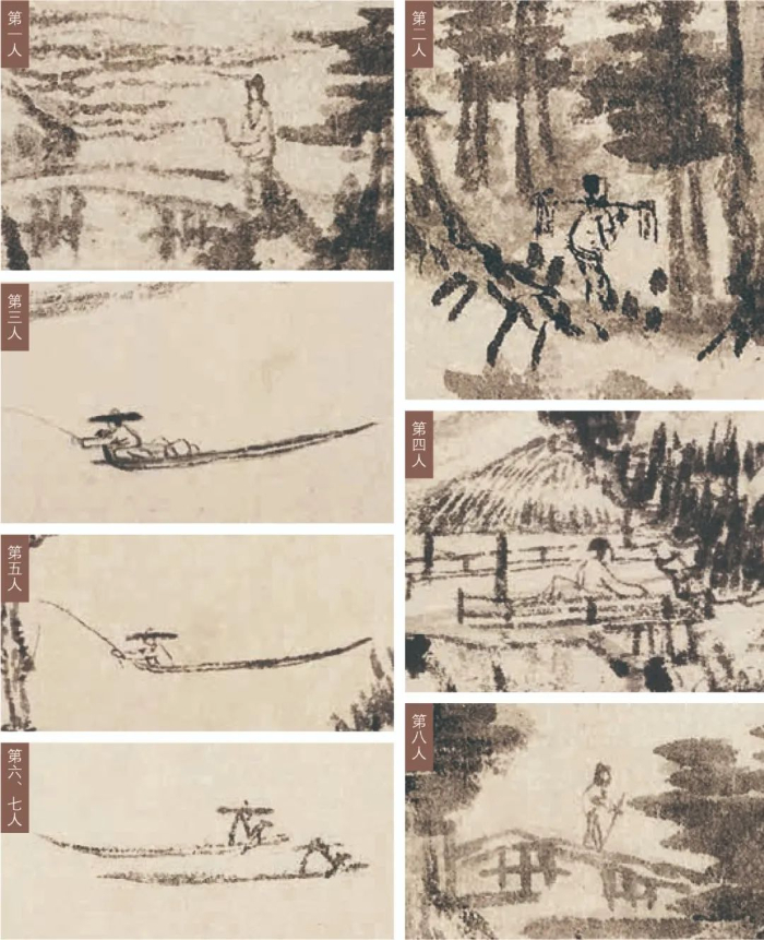 說第九位人物之前,我們先來看看上圖展示的已經形成共識的八位人物。從形象上看,這八位人物大概為高士、樵夫和漁父。詳細解讀這八位人物之前,我們不妨先一起找尋一下隱藏的第九位神秘人物。