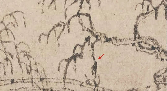 第三,橋樁部分被徹底燒毀。這是因為當年吳洪?;鹧钞嬀頃r,畫作最下面一部分可能燒毀了,這個橋樁在重新裝裱時估計不得不被裁剪掉了。