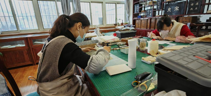 為了讓更多人了解古籍修復(fù)工作,天水市圖書館每年舉辦中華傳統(tǒng)曬書活動(dòng)、書籍函套技藝培訓(xùn)等,李東暉和同事們帶領(lǐng)讀者感受雕版印刷技術(shù)、學(xué)習(xí)制作書籍函套等。