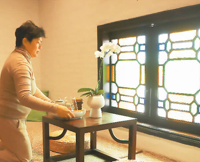 喜家私房菜館主理人陳苑碧在布置房間。記者 康 樸攝