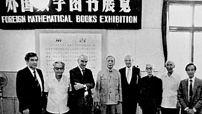 1980年,施普林格出版社在北京一個數(shù)學(xué)研討會上舉辦外國數(shù)學(xué)圖書展,出席者包括著名數(shù)學(xué)家吳文?。ㄗ蠖?、陳省身(左四)和江澤涵(右三)。作者供圖