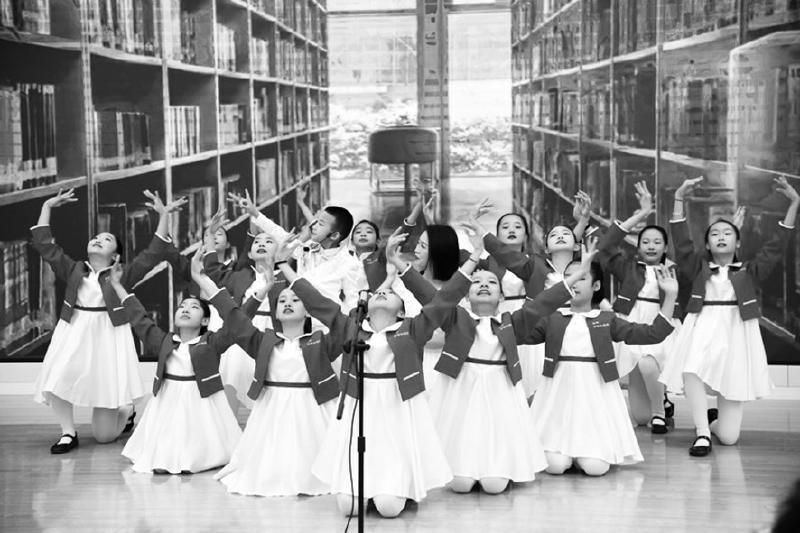 遼寧省開原市民主教育集團“納蘭合唱團”在發(fā)布會現(xiàn)場表演節(jié)目《老師》,以表達對老師的熱愛。 遼海出版社 供圖