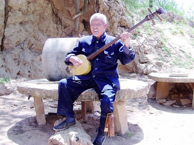 2006年5月,說(shuō)書人在陜西省延川縣馮家坪村村頭演唱。孫宏亮攝/資料照片